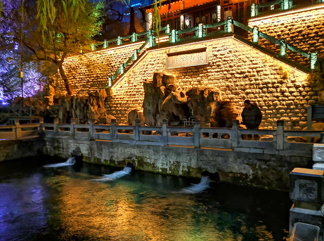 黑虎泉位于山東省濟南市歷下區解放閣南護城河南岸,一到夜晚,中外游客絡(luò )繹不絕,五顏六色的燈光照亮了整個(gè)黑虎泉,形成一道美麗的風(fēng)景。另外,喜歡坐船夜游的朋友也可以在黑虎泉護城河附近的船點(diǎn)乘船,夜游護城河,體驗泉城不一樣的夜晚。