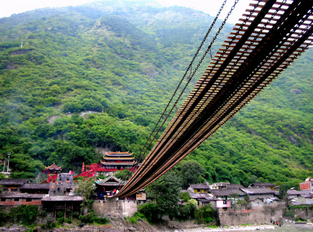 位于瀘定縣縣城以西大渡河,瀘定橋橋身由13根碗口粗的鐵鏈組成,其中底鏈9根,扶手4根,每根鐵鏈由862至997個(gè)由熟鐵手工打造的鐵環(huán)相扣而成。是真正的特索橋。