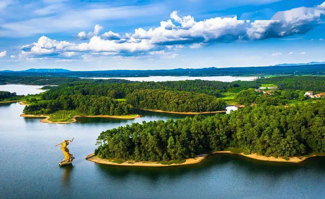 位于安徽合肥肥東與滁州全椒兩縣交界處,這個(gè)湖區占地面積19平方公里,主要景點(diǎn)有演法禪寺、天鵝島、白鷺洲,是一個(gè)集會(huì )議服務(wù)、客房住宿、餐飲接待、水上游覽、陸路觀(guān)光、軍體娛樂(lè )、恐龍樂(lè )園、鄉情垂釣等多功能旅游度假區