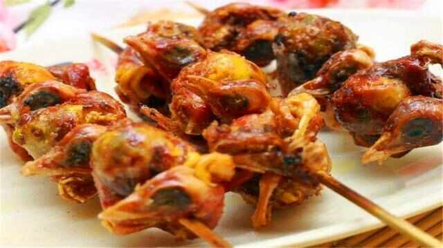 烤毛蛋也叫烤毛雞蛋,是將胚胎停止發(fā)育的小雞放在炭火上進(jìn)行炙烤,最后再依據個(gè)人口味撒上辣椒粉、孜然粉等等做成的美食。東北人吃東西比較豪邁,一般都是一次吃一串烤毛蛋,起碼得有三四個(gè)左右,這樣一串吃下來(lái),準保在短時(shí)間內感受不到饑餓來(lái)襲。雖說(shuō)這毛雞蛋吃起來(lái)非常美味,但是并非所有人都會(huì )嘗試,在看到小雞仔輪廓的那一刻,雞皮疙瘩就立馬起來(lái)了。